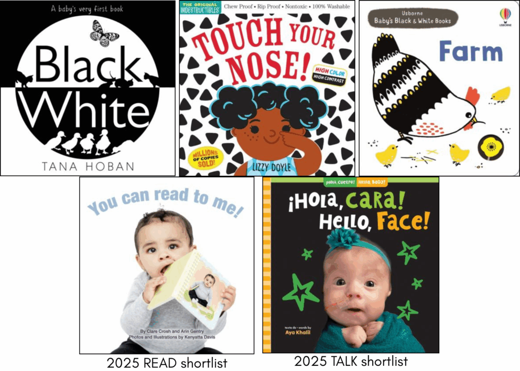 So what is special about these books? They are high contrast books, they have simple pictures, and bold text.